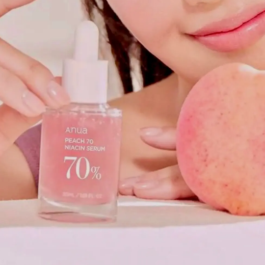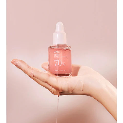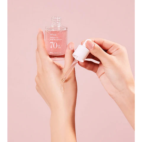 Elevate your skincare with Anua's Peach 70% Niacin Serum. Infused with Peach Fruit Extract and Niacinamide, this nourishing serum delivers a balanced and radiant complexion while clarifying pores and removing dead skin cells. The Peach Yogurt Complex, featuring Peach Flower Extract and Betaine Salicylate, renews tired skin and offers deep hydration with Vitamin B12 and three types of Hyaluronic Acid. Say goodbye to dull skin and hello to a luminous glow with Prunus Persica (Peach) Fruit Extract and Niacinamide. Use morning and night after cleansing and toning, and follow with moisturizer. Avoid using under the eyes and apply sunscreen when using in the morning. Let Anua Peach 70 Niacin Serum be your go-to for peachy-perfect, healthy skin.
